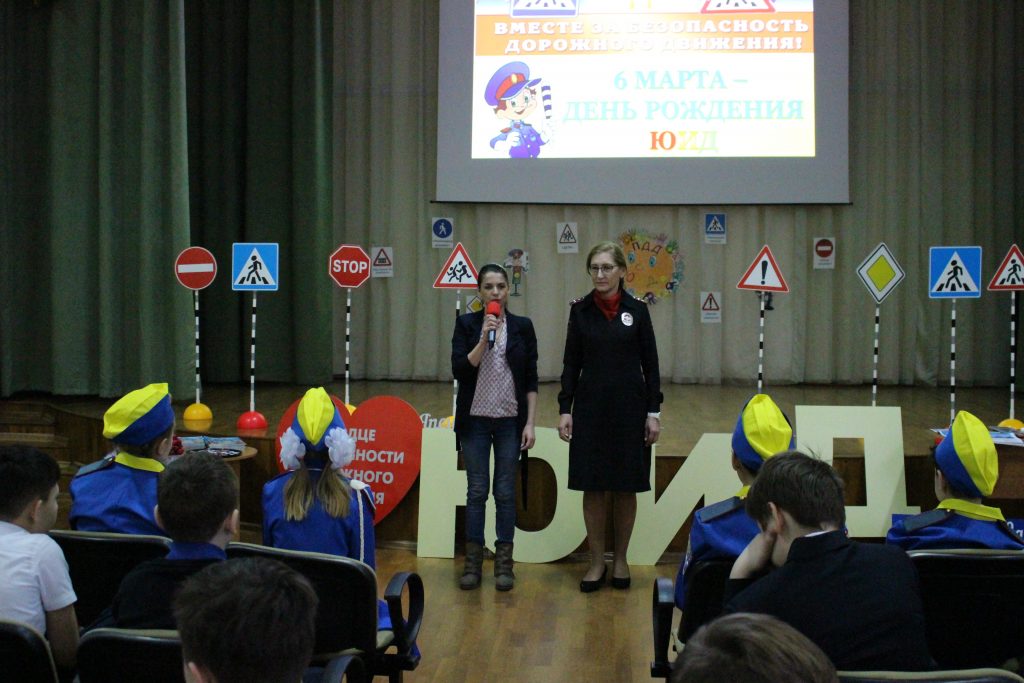 Сотрудники Госавтоинспекции поздравили с 47-летием образования отрядов Юных Инспекторов Движения, обратили внимание на вопросы безопасности дорожного движения и участию несовершеннолетних детей и подростков в пропаганде дисциплины на дорогах, напомнили ребятам об необходимости использования световозвращающих элементов в темное время суток и в условиях плохой видимости ,а также об основных правилах перехода проезжей части. В свою очередь школьники организовали флэшмоб, посвященный Дню создания ЮИД.