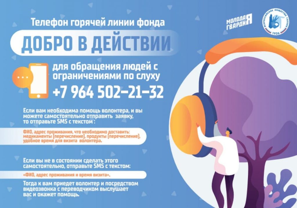 «Молодая Гвардия Единой России» совместно с благотворительным фондом «Добро в действии» и Всероссийским обществом глухих возобновила в условиях пандемии работу текстовой горячей линии для оказания волонтёрской помощи людям с ограниченными возможностями здоровья по слуху. Об этом сообщил и.о. председателя Координационного Совета МГЕР Антон Демидов.