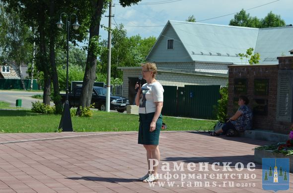 К собравшимся обратилась заместитель главы с/п Гжельское Н.Н.Щеглова, сказав: «Этот день напоминает нам обо всех погибших, замученных в фашистской неволе, умерших в тылу от голода и лишений. Мы помним славных защитников Родины, отстоявших родную землю, гордимся мужеством, героизмом, стойкостью наших солдат, офицеров, самоотверженностью тружеников тыла — женщин, стариков, детей. Мы низко склоняем головы перед всеми погибшими. Вечная память героям!»