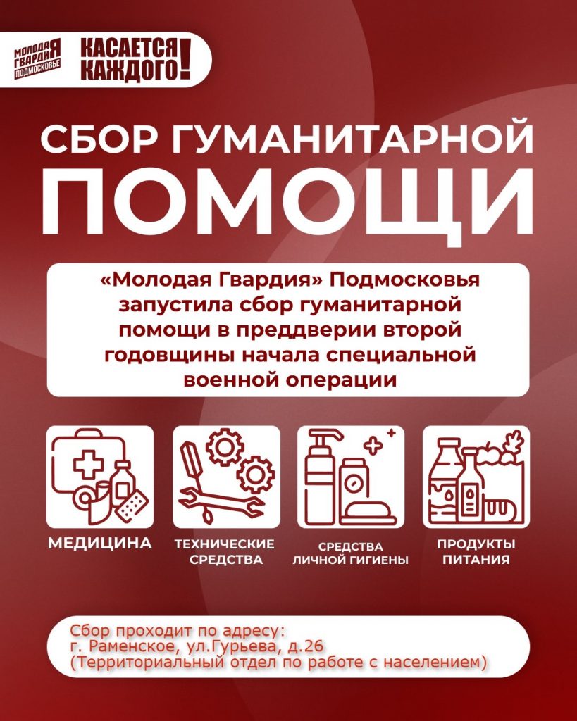 Раменское отделение «Молодой Гвардии» запускает сбор гуманитарной помощи в преддверии второй годовщины начала специальной военной операции