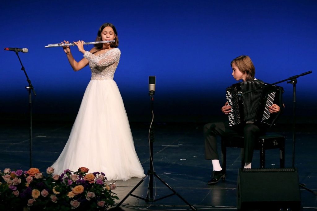 На флейте сыграет Евгения Шубина, обладательница, золотой медали XXII Дельфийских игр России, а на баяне Михаил Лосьмаков, стипендиат Губернатора Московской области, лауреат I степени Грантов Мэра Москвы в сфере культуры и искусства 2023.