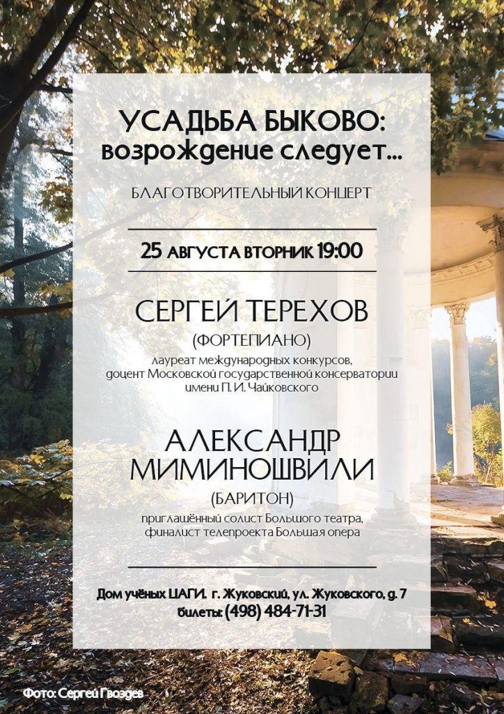25 августа в 19.00 в Доме учёных ЦАГИ(г. Жуковский) состоится единственный концерт пианиста Сергея Терехова и баритона Александра Миминошвили.
