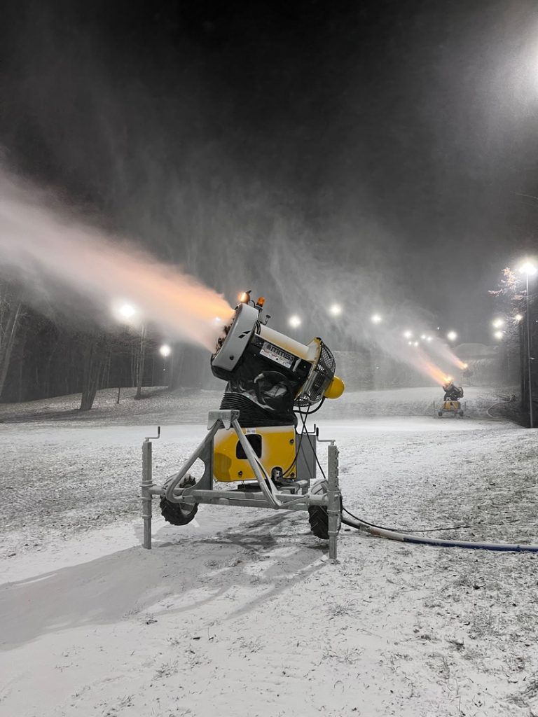 В минувшую пятницу 17 ноября Горнолыжный клуб Гая Северина приступил к подготовке к новому сезону. Они запустили оснежение склонов.