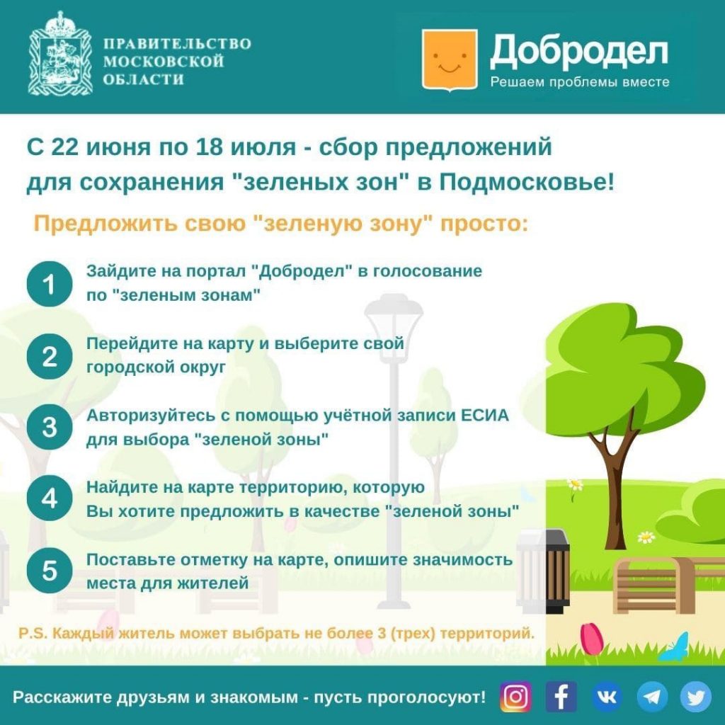 Сбор предложений по «зеленым зонам» продлится до 18 июля, после чего будут отобраны наиболее популярные зоны для внесения в систему РГИС и использования в работе ведомств Правительства МО.