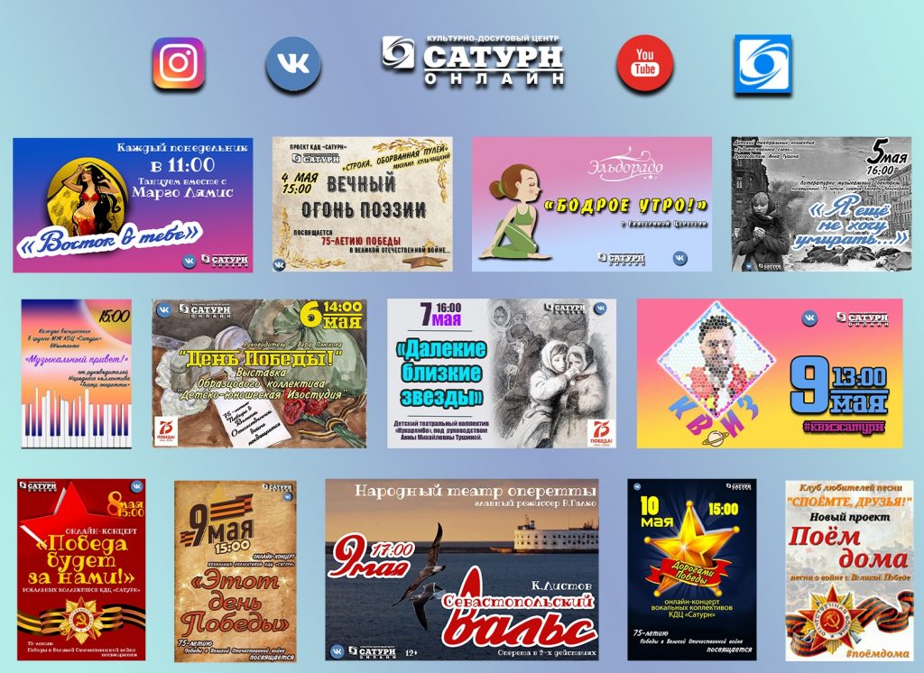 Ежедневно — Проект «Клуб любителей песни «Споемте, друзья!» с Народным коллективом «Вокальная студия», посвящённый 75-летию Победы в Великой Отечественной войне. Ведёт Виктор Гусев.