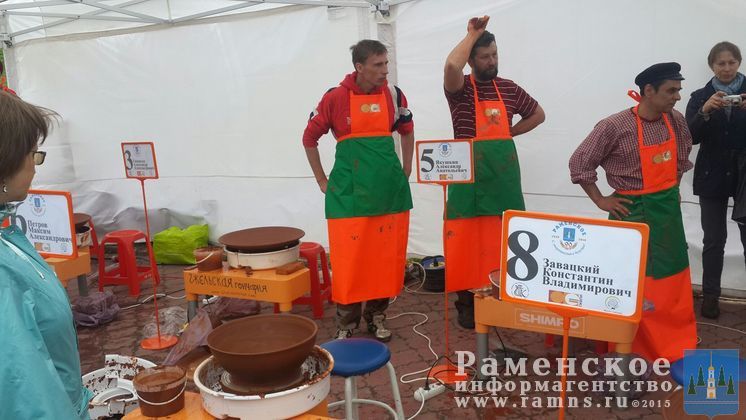В выставке участвуют мастера нашего района, а также приглашенные умельцы из города Коломны и Рязанской области. Всего восемь участников. Прокомментировал происходящее Сергей Акентьев, генеральный директор ООО «Керамика Гжели»: «Фестиваль керамики на территории Раменского района проходит впервые. На наше приглашение откликнулись мастера из Гжели, чтобы придать живое настроение фестивалю, мы придумали чемпионат среди мастеров гончарного искусства. Результаты чемпионата будут оглашены с праздничной сцены, а также состоится торжественное награждение победителей в 15.30».