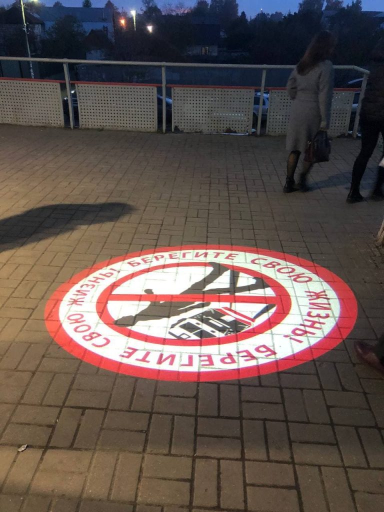 Для безопасности пассажиров на на двух ж/д станциях в Раменском установили гобо-проекторы. Они проецируют изображения с напоминаниями о правилах безопасности на железной дороге и работают днём и ночью.