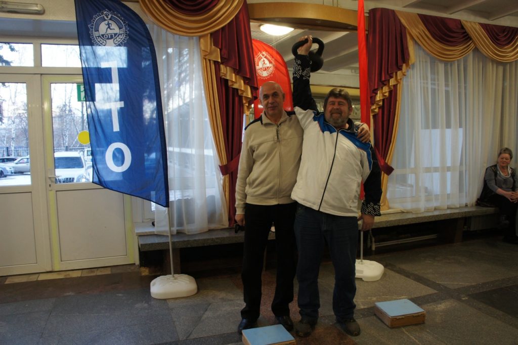 В холле установлена площадка для сдачи нормативов ГТО, по подъему гири и отжиманиям. Кто знает, может, у кандидатов уже есть золотой значок ГТО?