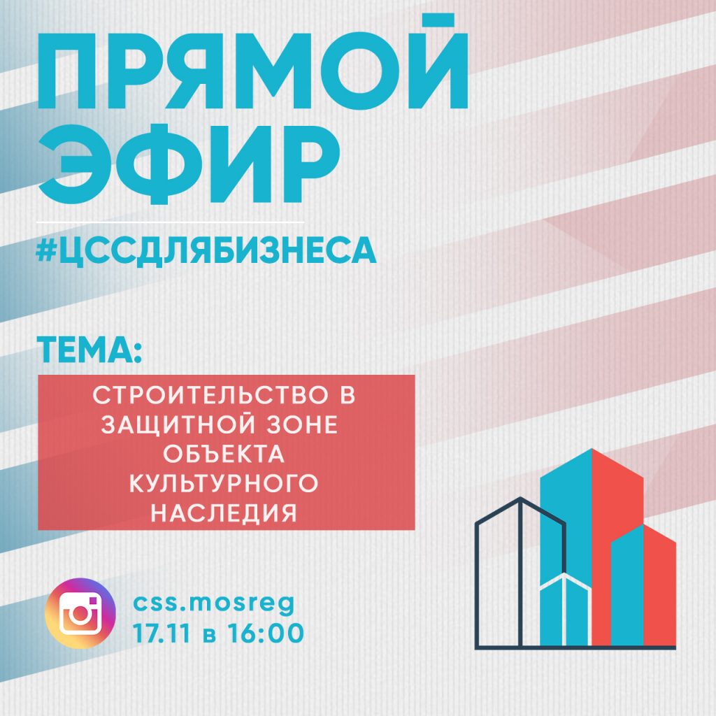 17 ноября в 16:00, во вторник, в инстаграме Центра содействия строительству при Правительстве Московской области @css.mosreg пройдет прямой эфир на тему «Строительство в защитной зоне объекта культурного наследия».