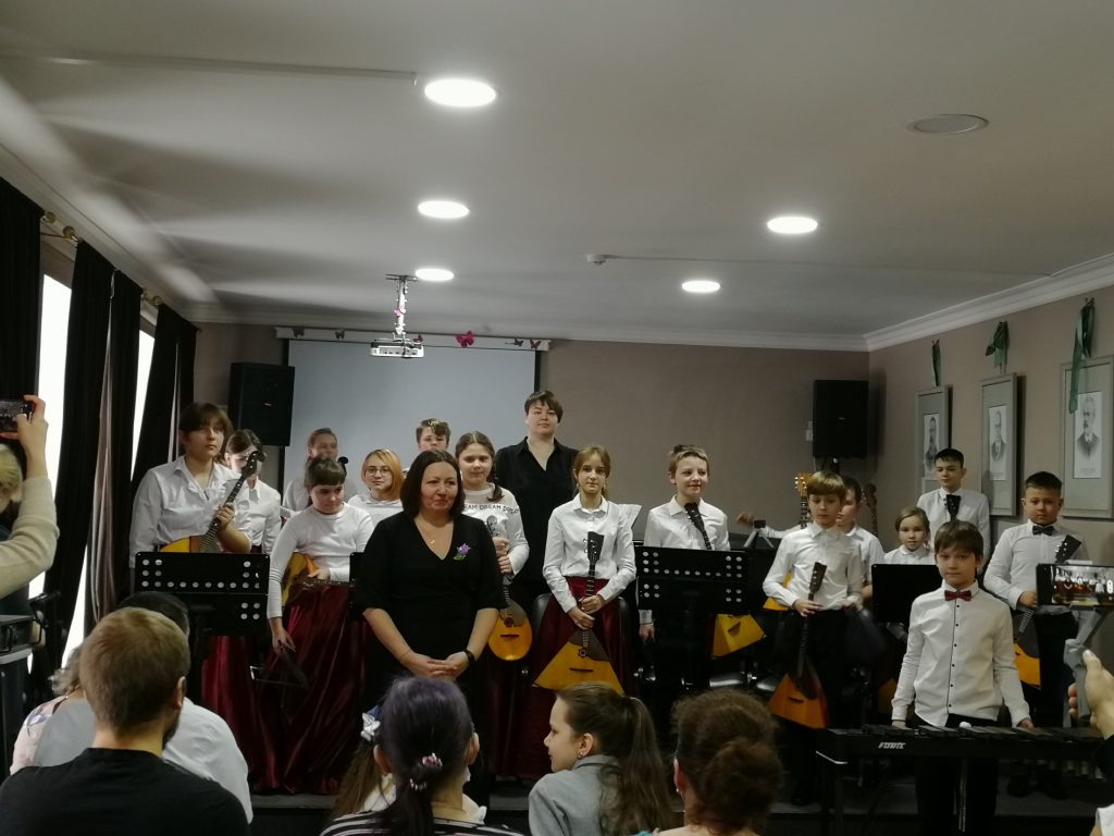 Во вступительном слове заведующая народным отделом Светлана Петровна Акимова рассказала слушателям, основу которых составляли родители, об успехах отдела, программе концерта, современных композиторах, которые пишут произведения для народных инструментов. В концерте прозвучали пьесы для домры, балалайки, баяна, аккордеона.