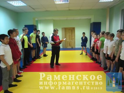 Воспитанники тренера Ю.Б.Сапрыкина должны были выполнить нормативы по общефизической подготовке — подтягиванию, отжиманию, поднятию туловища из положения лежа, прыжкам в длину . Также ребята должны были продемонстрировать нормативы по технической подготовке- это варианты самостраховки прыжки, кувырки и приземление.