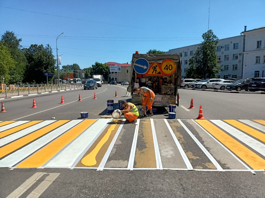 На дорогах Раменского городского округа обновляется разметка. С конца прошлой недели дорожники занимаются разметкой пешеходных переходов в центре г.Раменское, на ул.Михалевича.