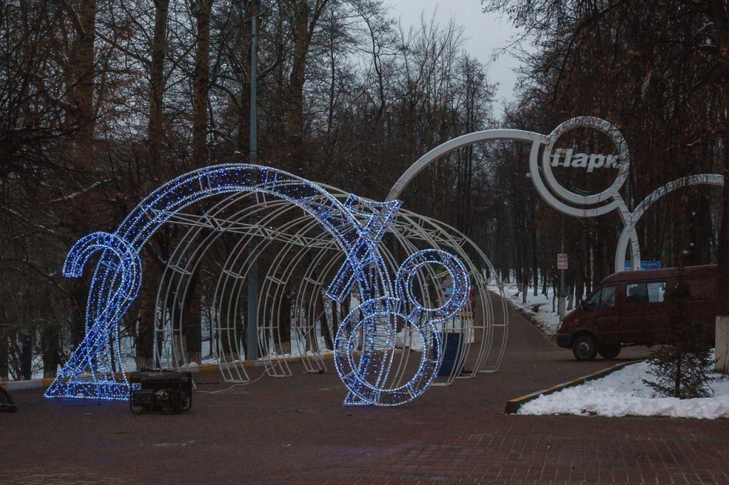 г. п. Заречье, Одинцовского м.р. ул. Заречная д.1, 2. Арки на центральной площади, освещение деревьев |