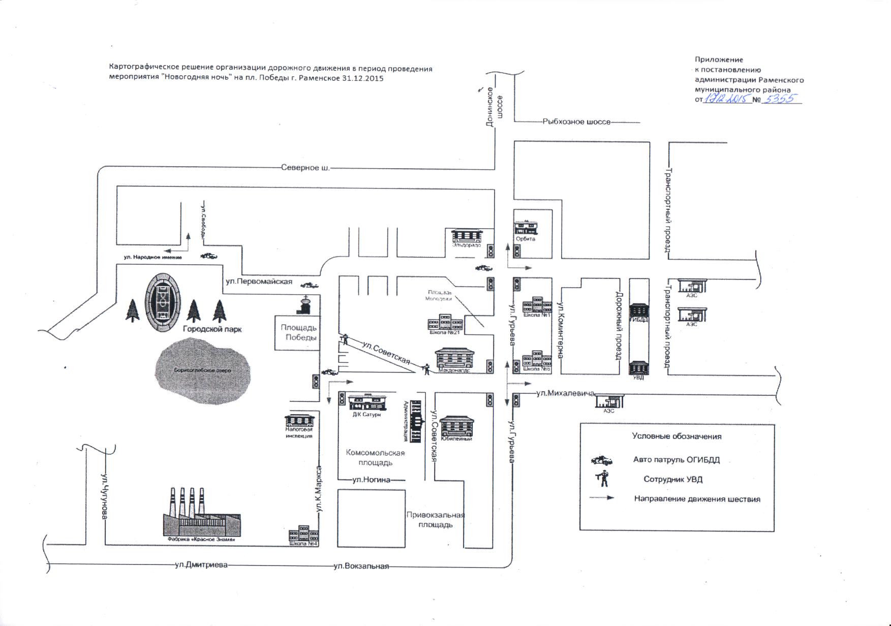 - Утвердить картографические решения организации дорожного движения при проведении новогодних мероприятий в г. Раменское, согласно приложению к настоящему Постановлению.