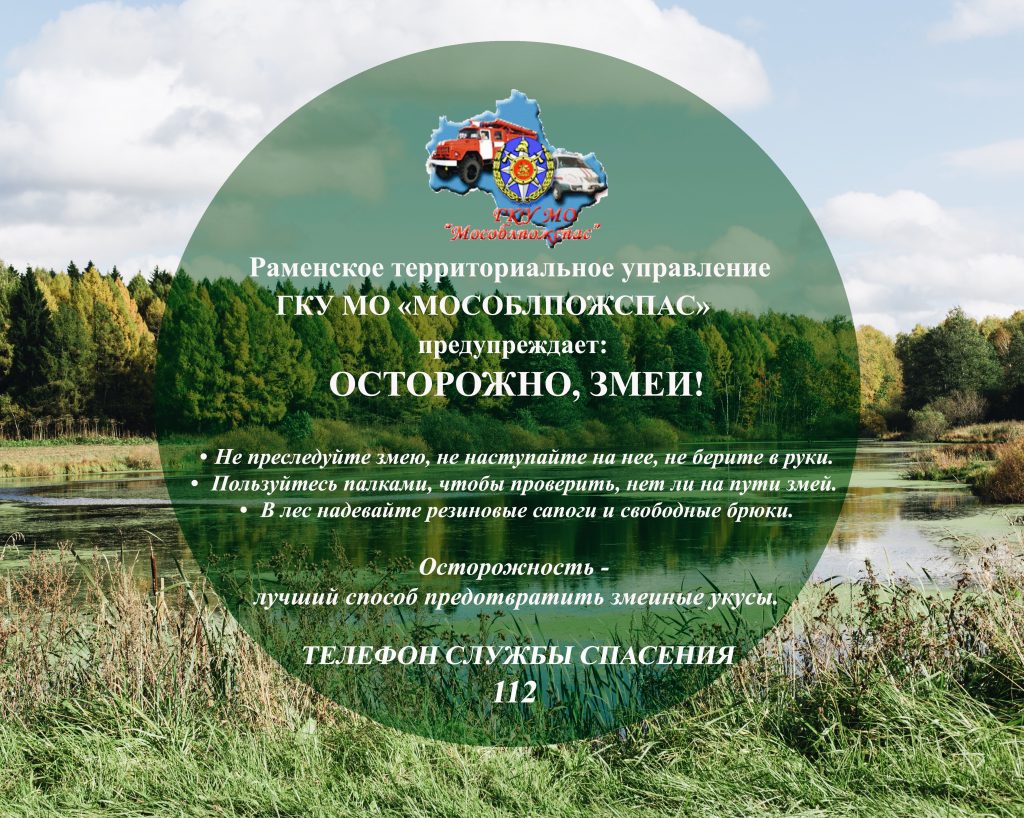 Раменское территориальное управление ГКУ МО «МОСОБЛПОЖСПАС» предупреждает: Осторожно! Змеи!