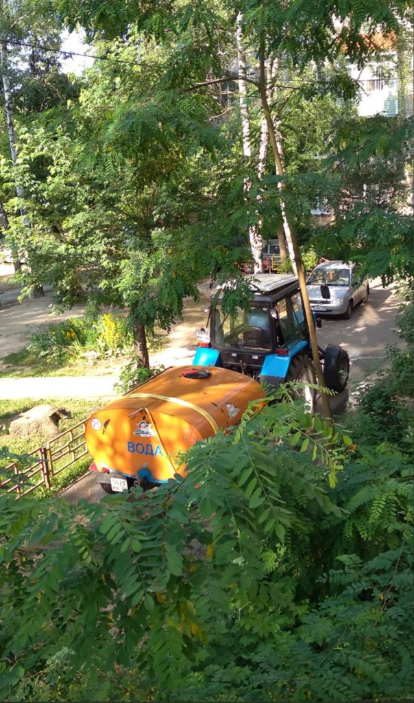 В 30-градусную жару на дворовые территории залинейной части г.Раменское вышла поливальная техника. В зеленых дворах освеженный водой асфальт помогает пережить задержавшуюся в Подмосковье аномальную для средней полосы температуру.