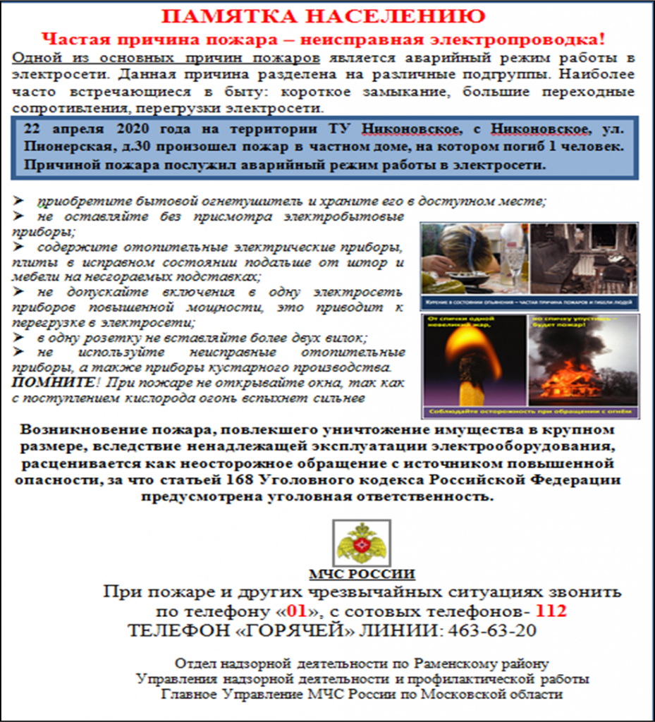 Вместе с тем на территориях отдельных территориальных управлений округа, таких как Быково, Ганусово, Никоноское, Удельная, Чулково, наблюдается одновременный рост количества пожаров и погибших на пожарах людей. В городе Раменское зафиксировано одновременное увеличение количества погибших и травмированных людей при пожарах.