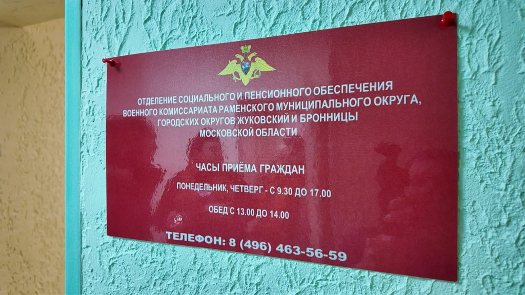 С 12 января 2026 года отделение социального и пенсионного обеспечения военного комиссариата Раменского муниципального округа, городских округов Жуковский и Бронницы Московской области изменило адрес.