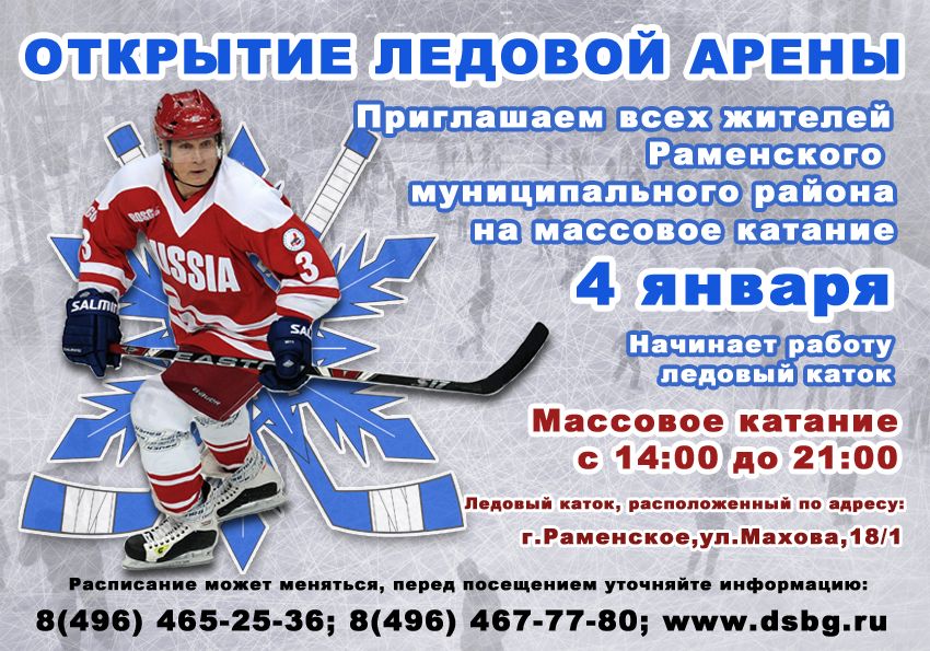 Руководством Раменского района и ДС «Борисоглебский» было принято решение открыть двери нового Физкультурно-оздоровительного комплекса с крытым катком им. Владимира Лутченко для посещения жителями с 4 января 2016 года.