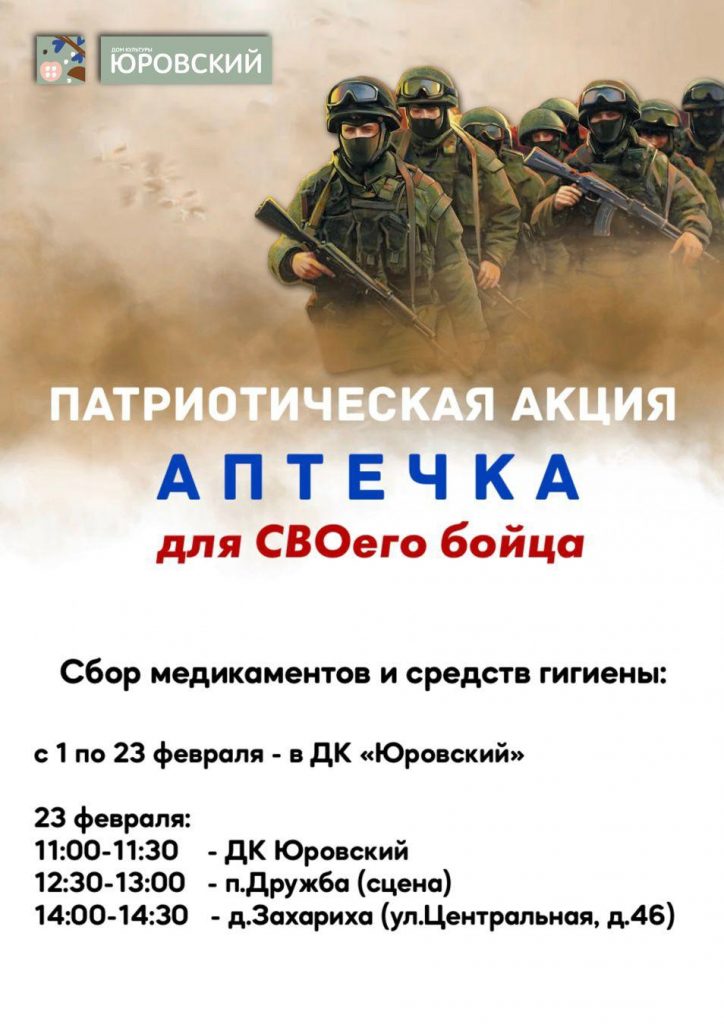 В феврале в ДК «Юровский» все желающие могут принести медикаменты для участников СВО.