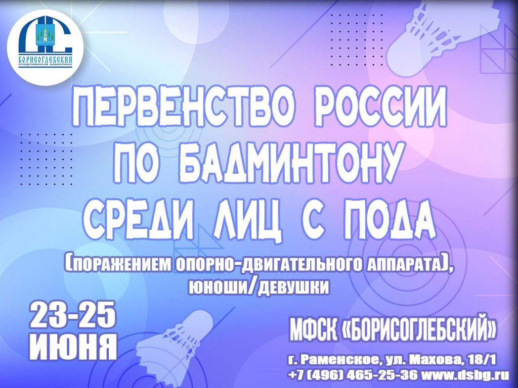 С 23 по 25 июня в спорткомплексе «Борисоглебский» состоится Первенство России по паралимпийскому бадминтону среди спортсменов с поражением опорно-двигательного аппарата.