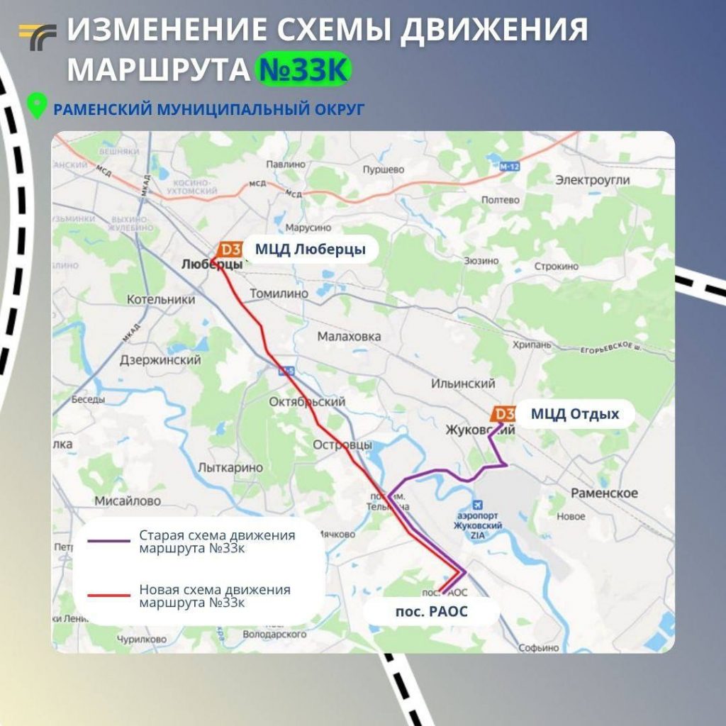 С 18 октября автобусы маршрута №33к «ст. МЦД Отдых — РАОС» возобновляют движение до станции МЦД Люберцы.