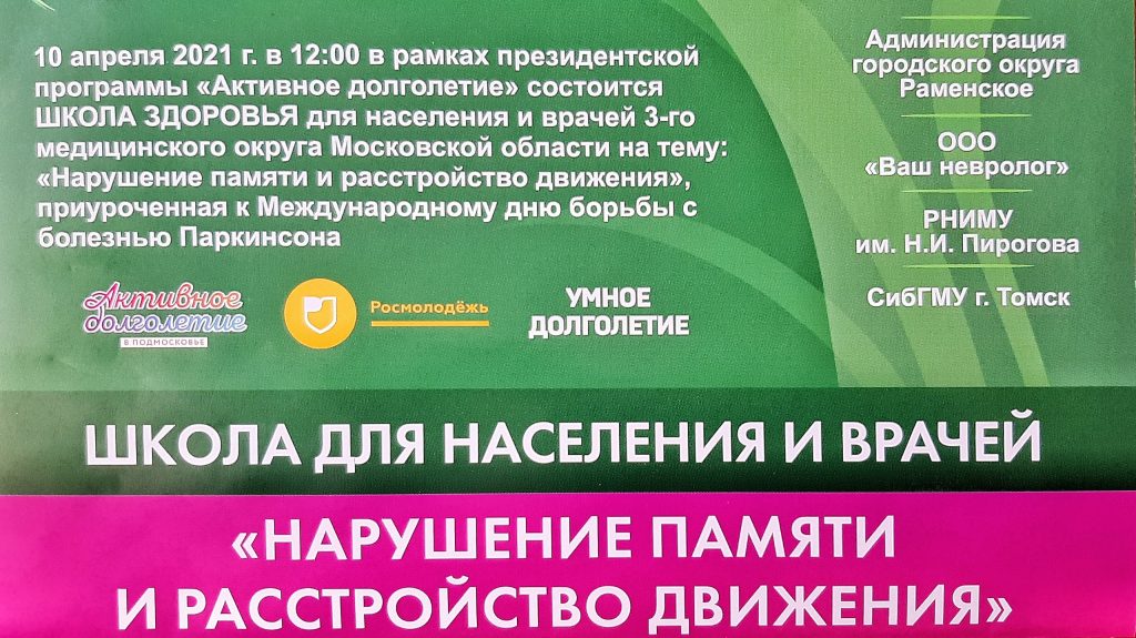 Раменчан приглашают посетить информативное и полезное с точки зрения медицинского просвещения мероприятие, которое предлагает Школа для населения и врачей. В программе, которая включает выступления врачей-специалистов, освещается серьёзная тема: «Нарушение памяти и расстройство движения». Вход свободный.