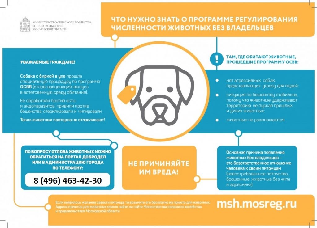 Если вас беспокоят бродячие собаки, сообщите об этом нам через онлайн-приемную на официальном сайте администрации муниципалитета или по телефону 8 (496) 463-42-30.