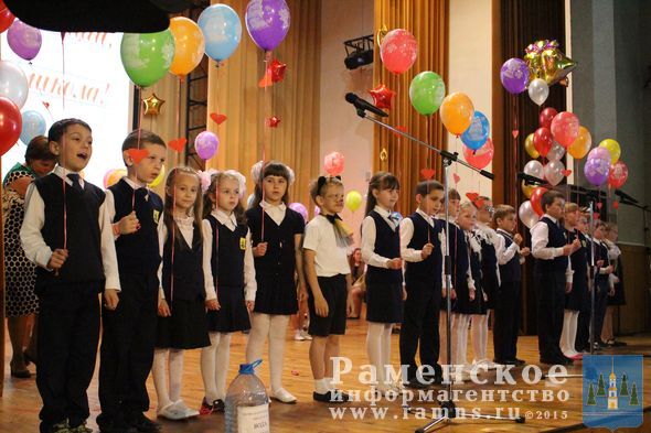 В актовом зале школы на торжественном мероприятии собрались ученики, родители, учителя .