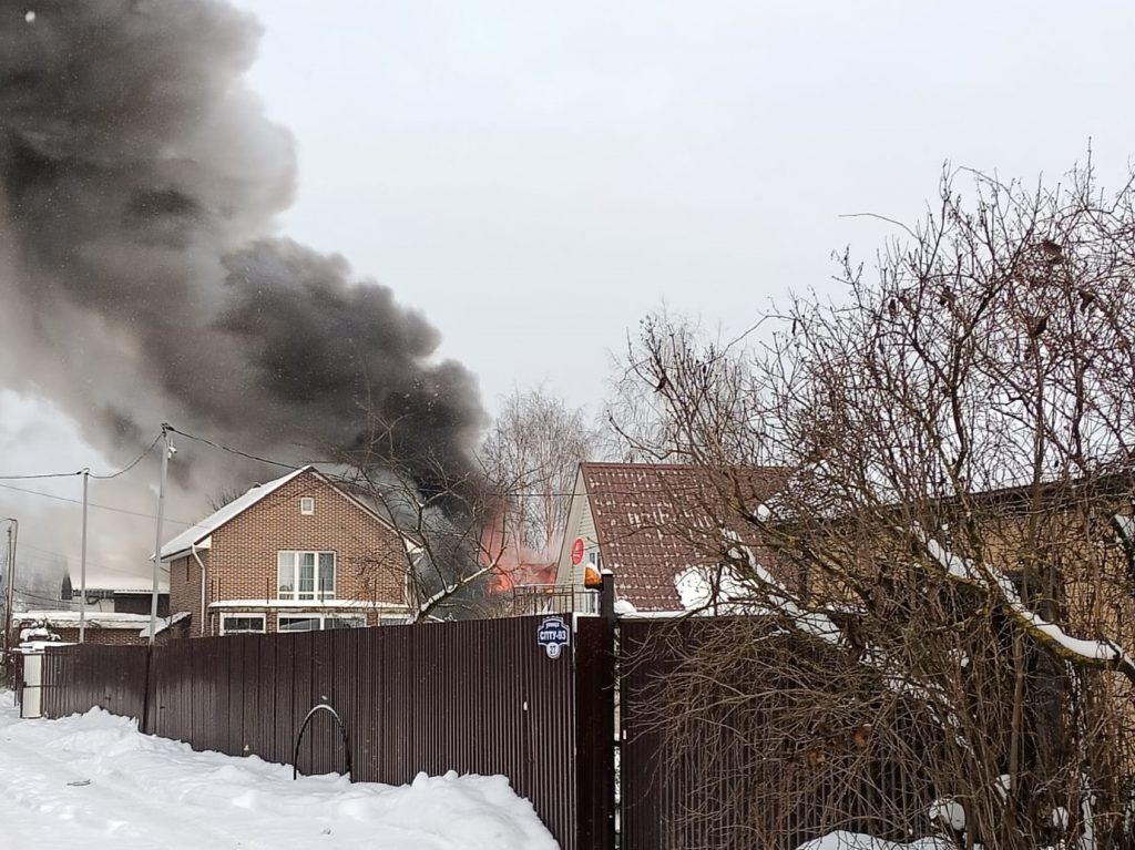 Горит негазифицированное строение. На место выехали пожарные расчеты и спецслужбы. Информация о пострадавших уточняется.