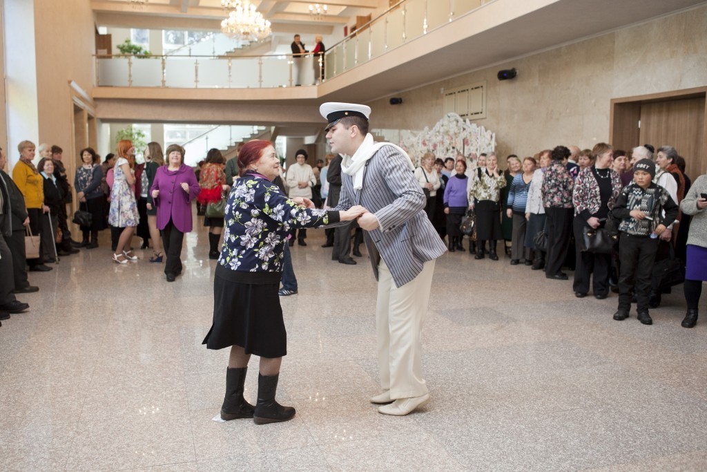 На сцене КДЦ «Сатурн» в этот день царил культ Весны и Прекрасного, все самые красивые песни и стихи были обращены к Женщинам. Их награждали, дарили цветы и приглашали танцевать. Да, да у компании «О. Бендер и сотоварищи: Шура Балаганов — сын лейтенанта Шмидта и Пониковский — губернатор острова Барнео», прибывших в Раменское 6 марта 2018г. прямо из Жмеринки в белых парусиновых штанах и ботинках на босу ногу была масса великолепных идей. Оказывается, у мадам Петуховой было не просто 12 стульев, а еще и кресло. В поисках того самого заветного кресла, в котором спрятаны бриллианты, вся веселая компания обыскала весь зал, пробовала сидеть на разных креслах. И когда, наконец, оно было найдено, бесподобный и настойчивый Бендер пошел «на абордаж» — пригласил на танго ту, которая сидела в нем, а его подельники тем временем искали клад. Но клад к тому времени уже «превратился» в сотни цветов, которые были подарены женщинам.