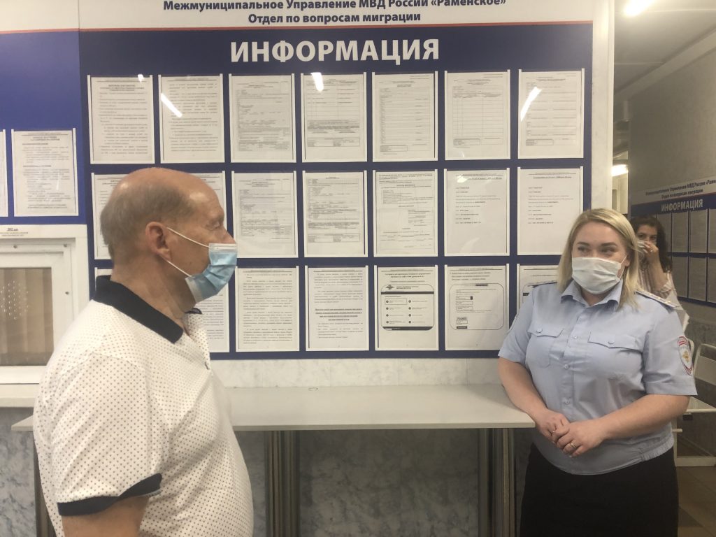 Председатель Общественного совета при МУ МВД России «Раменское» Виктор Стрельников в рамках акции «Гражданский мониторинг» посетил отдел по вопросам миграции.