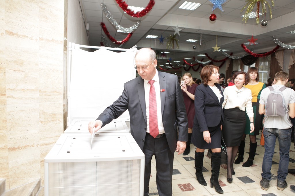 В холле ДК им.Воровского были установлены настоящие кабинки и урны для голосования.