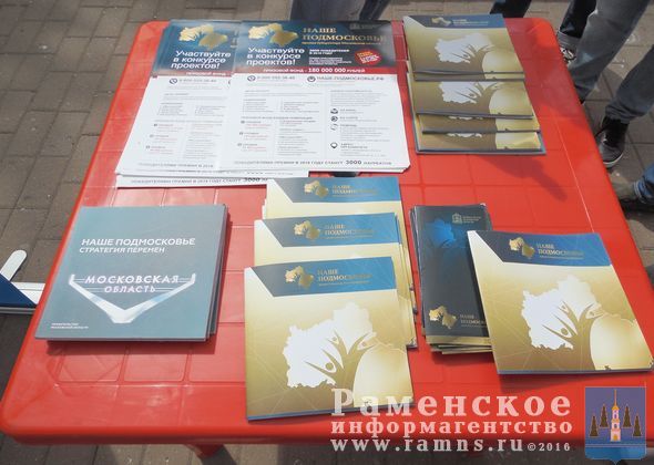 В этот день, на площади Молодежи и на бульваре Левашова в микрорайоне Холодово, можно было получить информационные буклеты. Члены Общественной палаты рассказали заинтересованным раменчанам о том, как правильно заполнить заявку на Премию Губернатора Московской области «Наше Подмосковье».