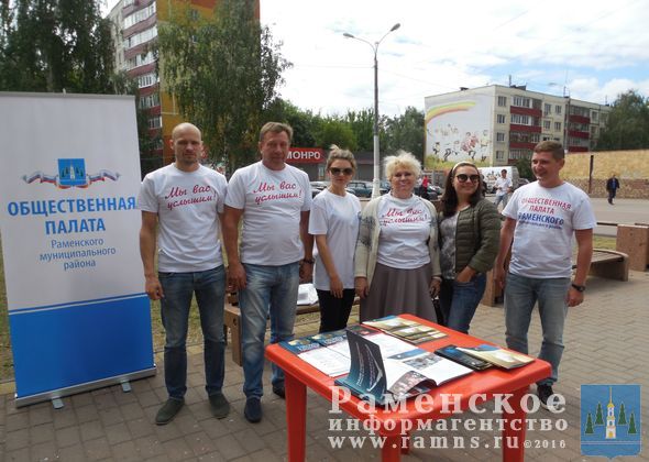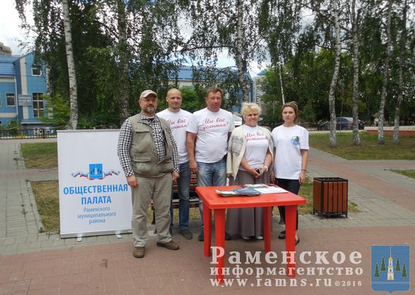 8 июля Общественная палата Раменского муниципального района провела акцию, в которой проинформировала жителей Раменского района о начале конкурса на премию Губернатора «Наше Подмосковье», а также пригласила заинтересованных и неравнодушных граждан нашего города и района выдвинуть свои проекты и идеи на эту премию.