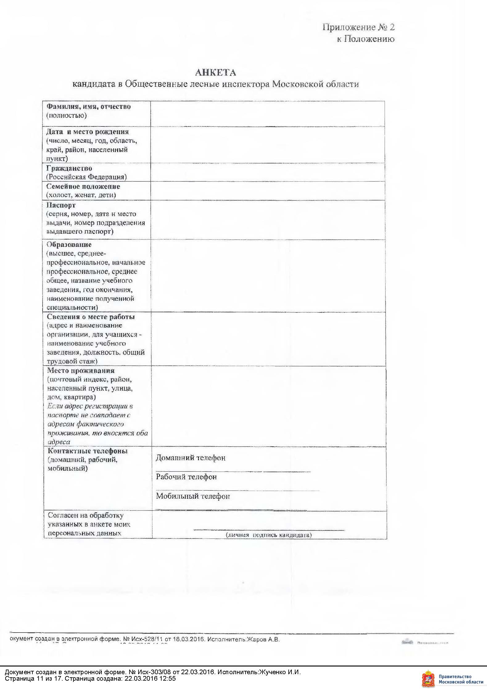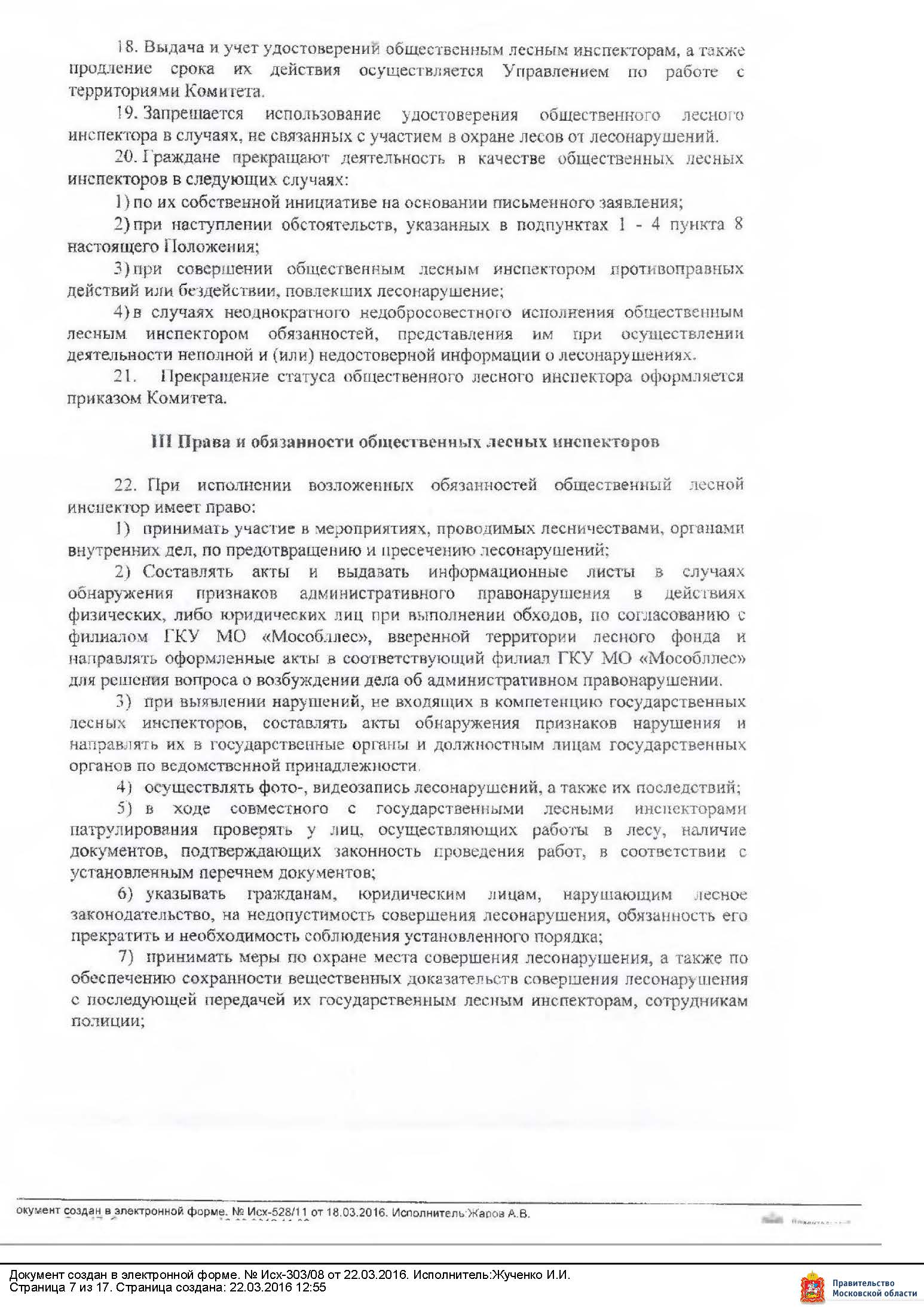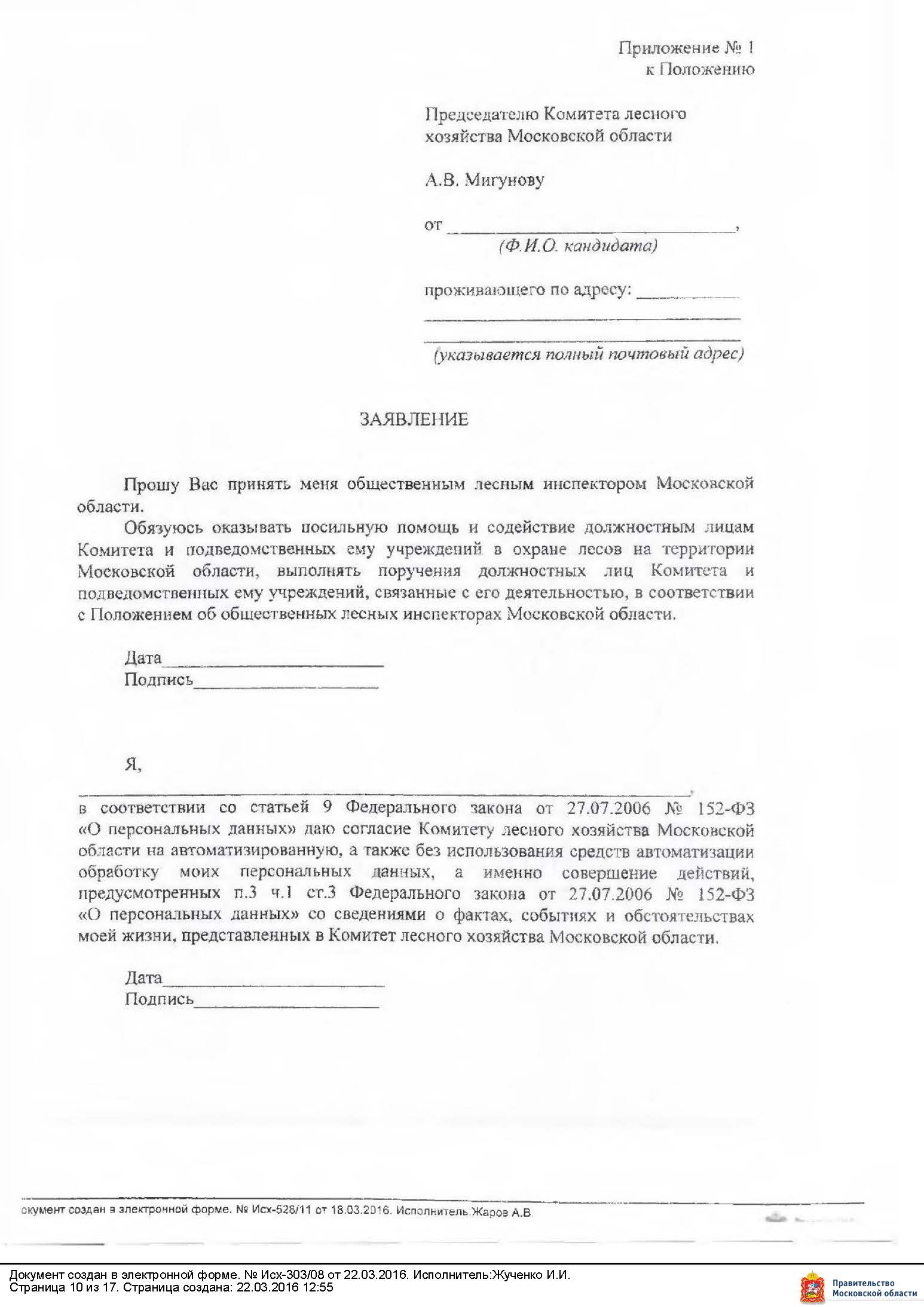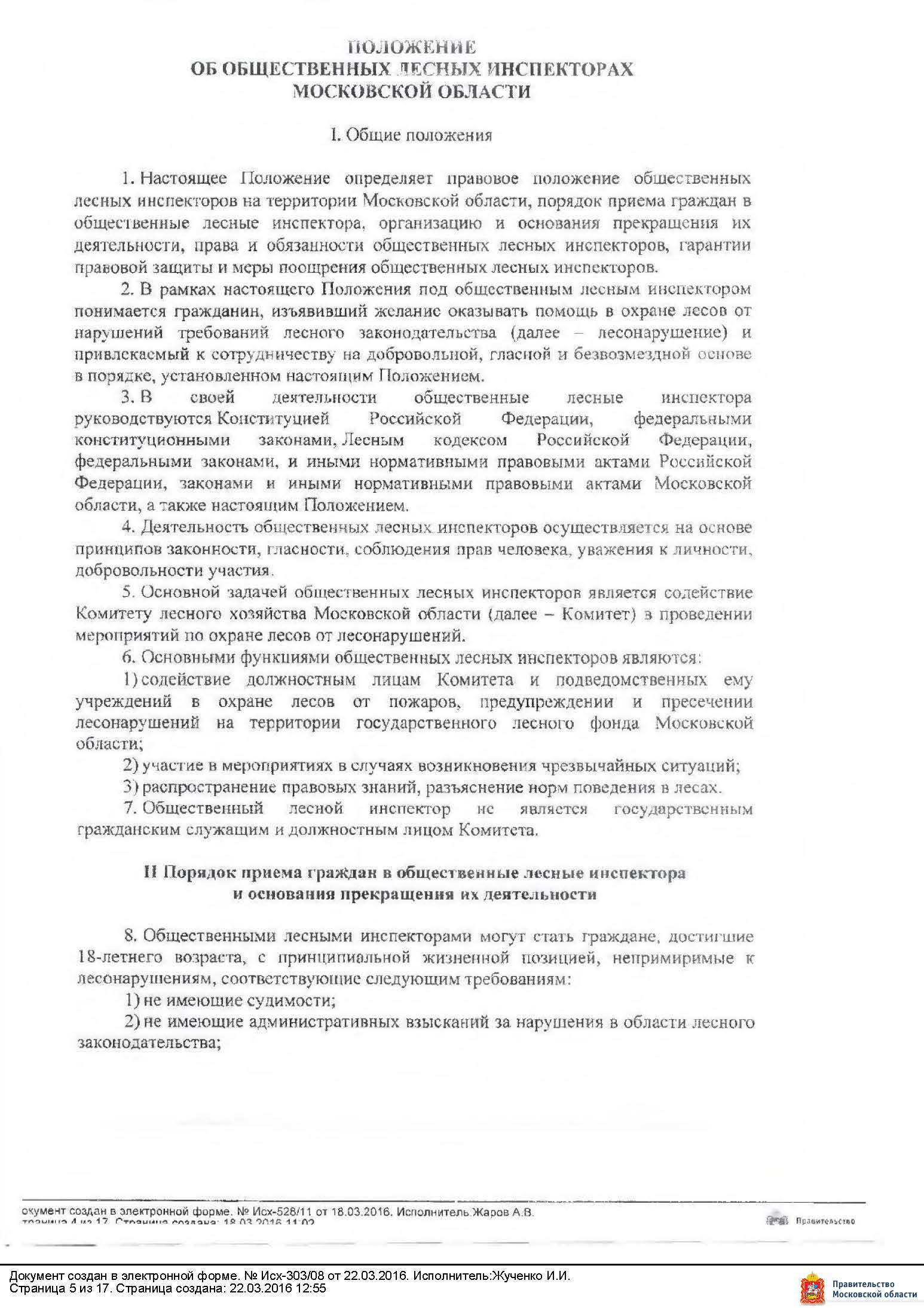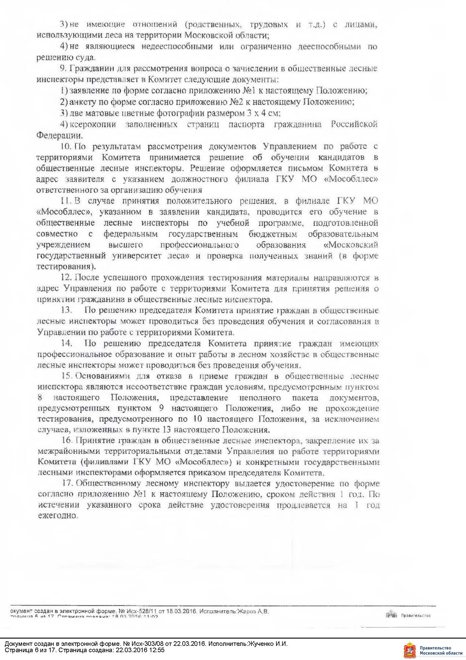 Приказ Комитета лесного хозяйства МО «Об утверждении Положения об общественных лесных инспекторах»