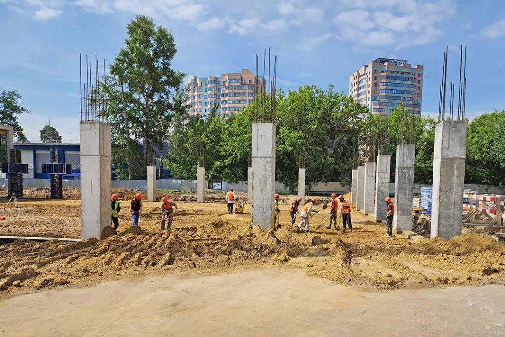 На сегодняшний день на объекте 40 человек рабочих и 2 единицы техники. Монолитные работы близятся к завершению. В настоящее время строители возводят корпус, где будет размещаться бассейн с пятью дорожками по 25 метров.