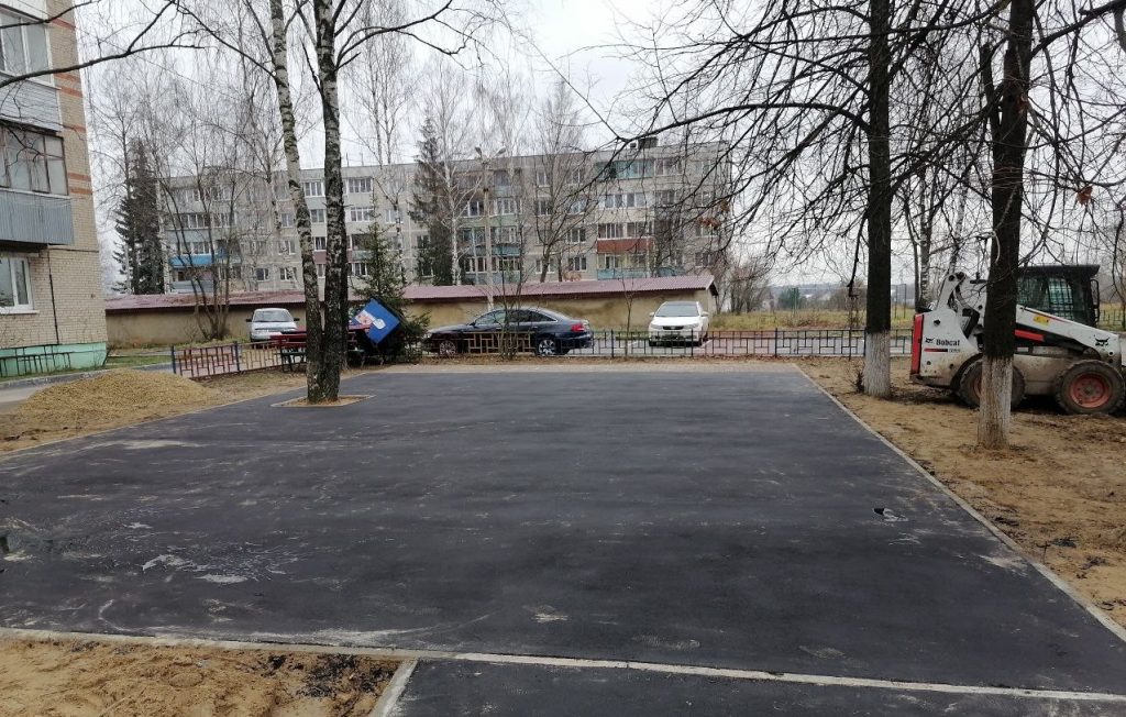 По состоянию на 9 ноября здесь подготовлено асфальтовое основание для обустройства резинового покрытия площадки, построена новая тротуарная дорожка и две зоны отдыха с плиточным покрытием.