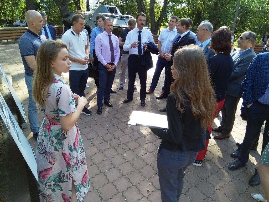 На площадке музея военной техники специалисты организации-проектировщика разместили стенды с планом-проектом обустройства парковой зоны. Собравшиеся выслушали презентацию новой концепции, задали интересующие вопросы и обсудили проведение дальнейших мероприятий.