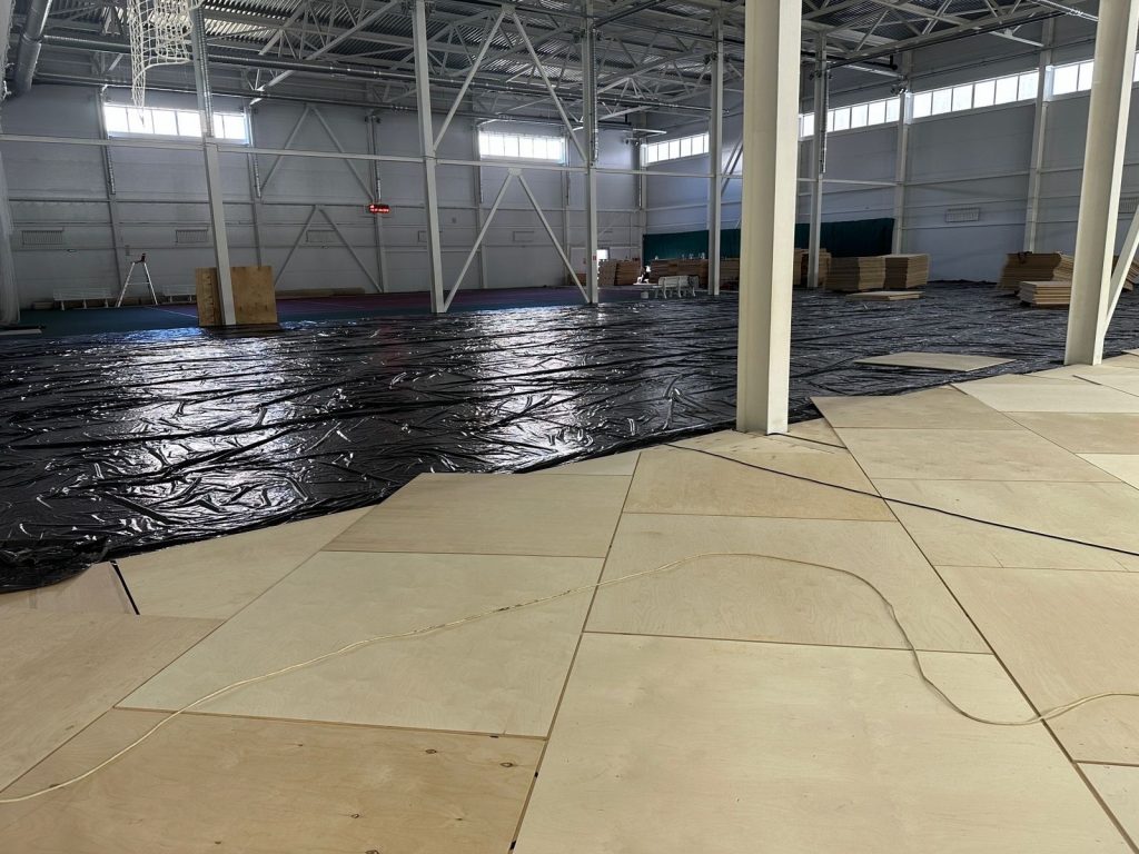 Работу планируют закончить к середине августа. В зале появится возможность для занятий волейболом и баскетболом.