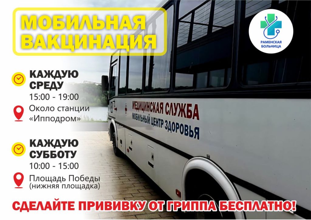 Жители округа могут пройти бесплатную вакцинацию против гриппа в мобильных медицинских пунктах. Предварительная запись не требуется.