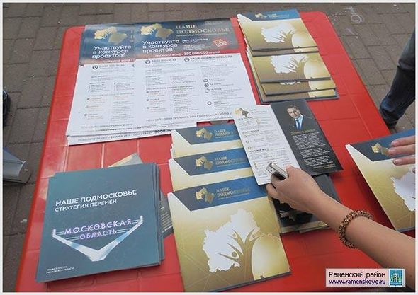 В июле Общественная палата Раменского муниципального района провела цикл акций, в котором проинформировала жителей Раменского района о начале конкурса на премию Губернатора «Наше Подмосковье», а также пригласила заинтересованных и неравнодушных граждан нашего города и района выдвинуть свои проекты и идеи на эту премию.