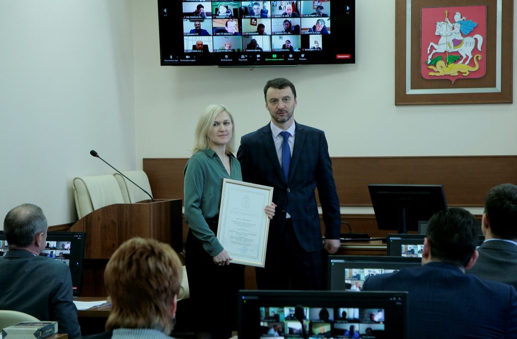 На оперативном совещании глава округа Виктор Неволин вручил начальнику архивного управления Елене Губаревой высокую награду – Благодарность Губернатора Московской области, поблагодарил коллектив управления за достойный результат и пожелал дальнейших успехов в работе.