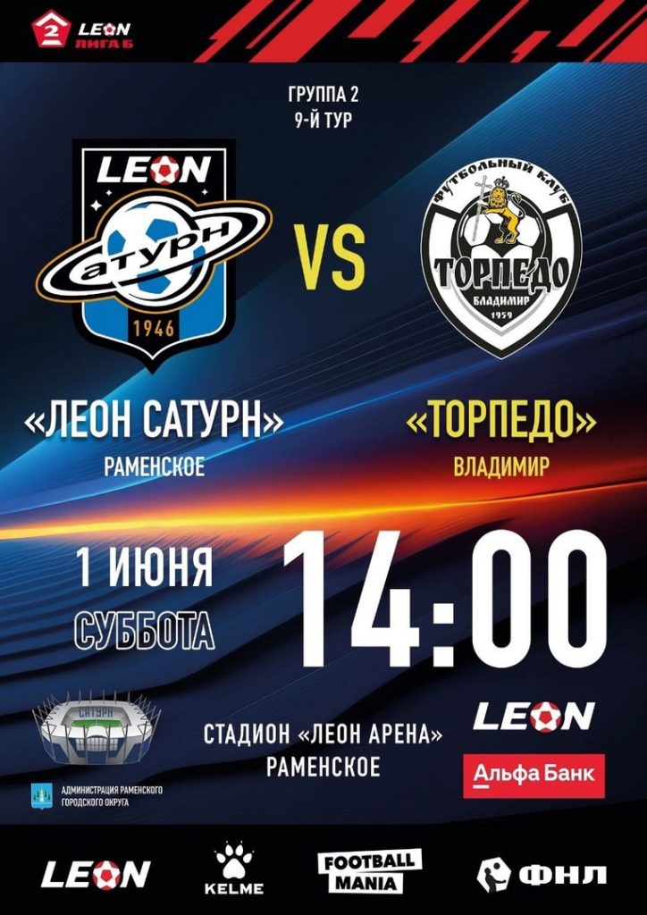 В эту субботу команда «Леон Сатурн» встречается на домашнем поле с «Торпедо» из Владимира.