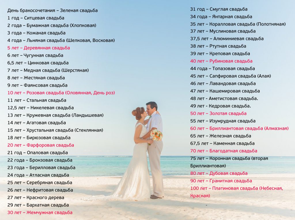 Каждая годовщина свадьбы имеет свое символическое название, а сам день свадьбы – своеобразный «нулевой километр» на жизненном пути новобрачных, носит символичное название «зеленой свадьбы».