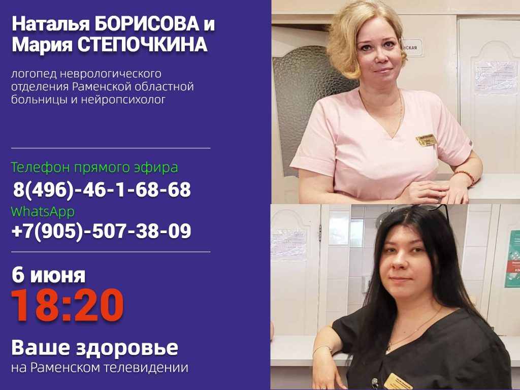 Раннюю реабилитацию пациентов с острым нарушением мозгового кровообращения (инсульт) обсудим в прямом эфире Раменского телевидения во вторник 6 июня. Гости студии — логопед неврологического отделения Раменской областной больницы Наталья Борисова и нейропсихолог, Мария Степочкина.