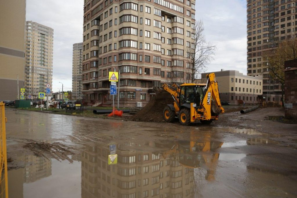 Однако само здание до сих пор располагается в центре строительного процесса: в микрорайоне на Северном шоссе готовятся к сдаче новые корпуса, работает техника.