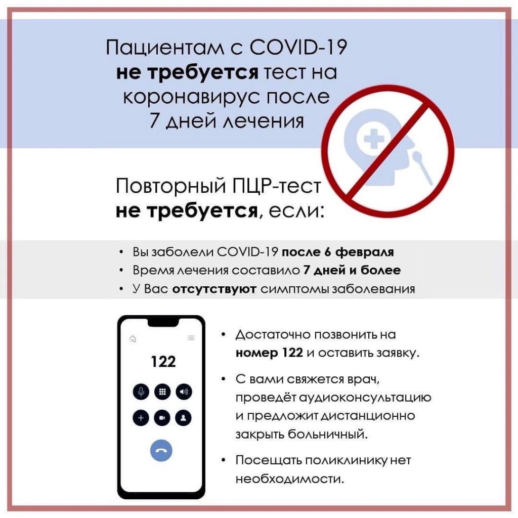 Тех, кто находился на лечении дольше 7 дней, будут выписывать без повторного ПЦР-теста. Правила 7-дневного лечения коронавируса распространяются только на тех, кто заболел после 6 февраля, уточнил оперштаб.