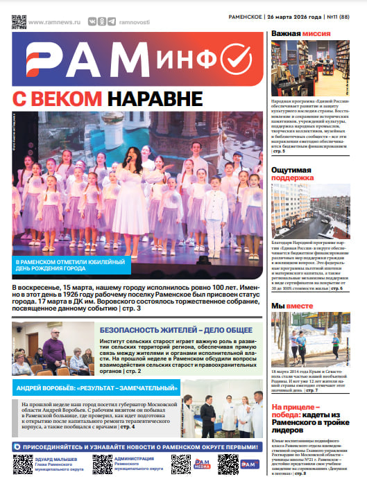В воскресенье, 15 марта, нашему городу исполнилось ровно 100 лет. Именно в этот день в 1926 году рабочему поселку Раменское был присвоен статус города. 17 марта в ДК им. Воровского состоялось торжественное собрание, посвященное данному событию.