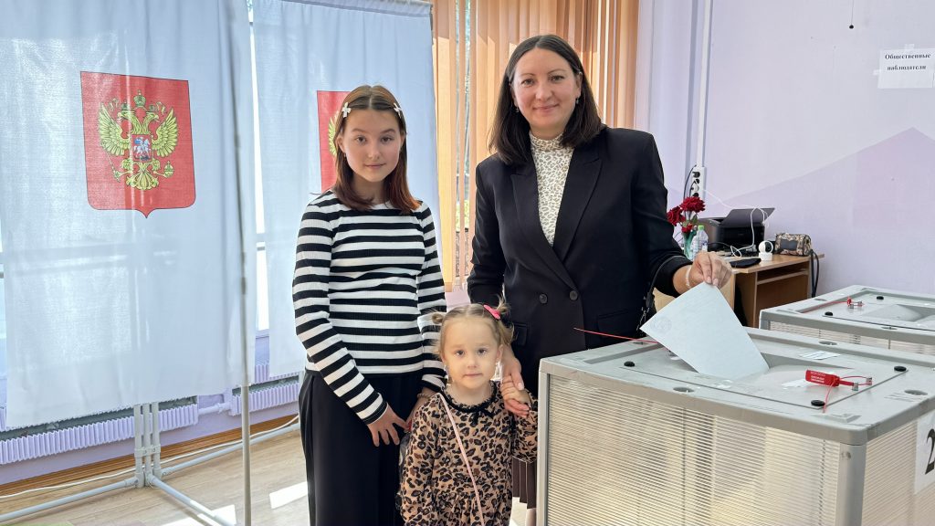 На избирательном участке № 2508, который располагается в Раменской школе №19, проголосовала Анастасия Р., жена военнослужащего, находящегося в зоне СВО. Ее супруг, кадровый офицер Российской армии, с первых дней принимает участие в специальной военной операции. Дома его ждет семья — жена, две доченьки, которые сегодня с мамой.